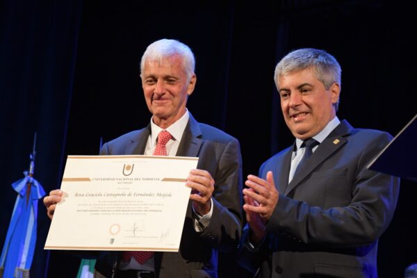“Que este título sea un tributo a la inquebrantable determinación de quien supo convertir el dolor en esperanza y la tragedia en impulso para el cambio”, señaló el rector de la UNNE y cosechó un cerrado aplauso de las personas presentes que colmaron el salón auditorio de la Casa de las Culturas, en Resistencia.