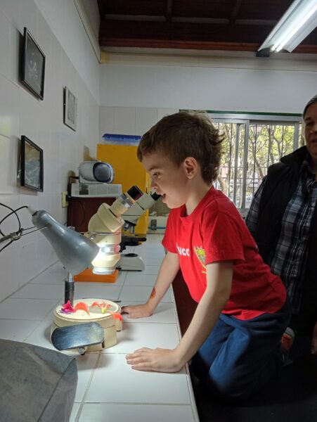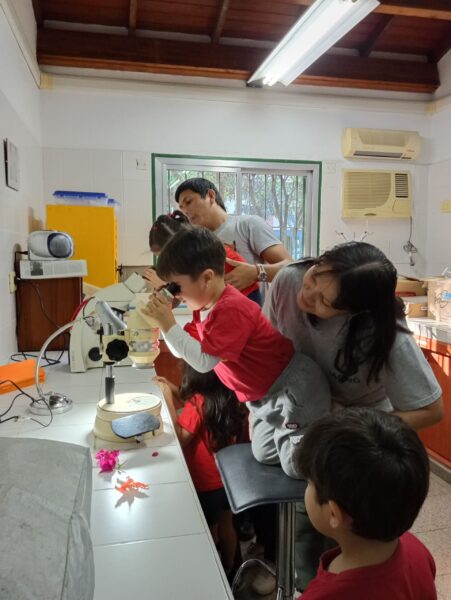 Durante la visita los alumnos y las alumnas de la salita de cinco años visitaron los laboratorios del Instituto donde hicieron observaciones en el microscopio y en la lupa. Durante el turno mañana la actividad de laboratorio fue llevada adelante por la ingeniera agrónoma Cristina Sotelo y en el turno tarde por los técnicos Javier Galloso y Graciela Gómez.