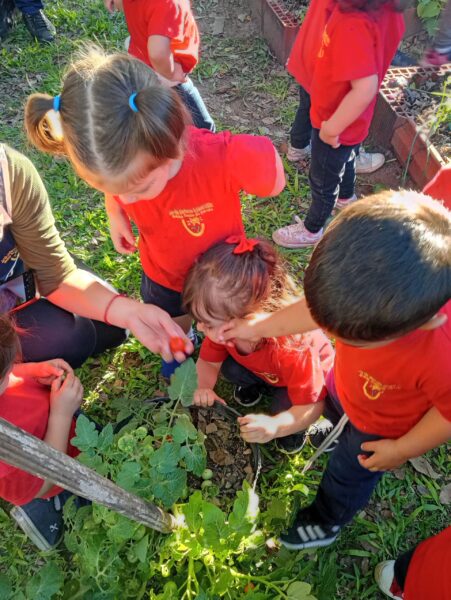 Acompañados por sus docentes, los niños y niñas de las salas de 1, 2, 3 y 4 años recorrieron la huerta didáctica demostrativa del Instituto Agrotécnico, donde reconocieron las especies que la integran como así también plantas aromáticas y flores.