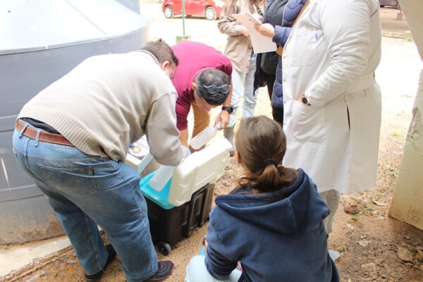 En esta oportunidad el equipo extensionista realizó la toma de muestras de agua de red y de perforación, cloro utilizado, miel y compost en el predio de la agrotécnica dependiente de la universidad, realizadas en las áreas de cocina, tambo, tanque australiano y granja.