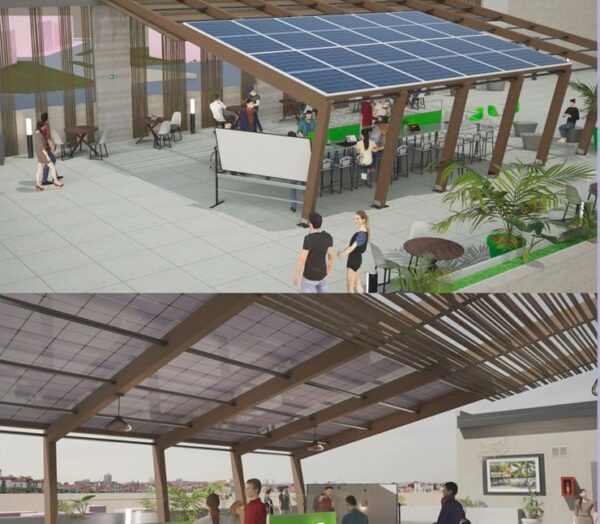 Las propuestas también evidenciaron impactos en la organización espacial institucional. En el caso de la Terraza Solar, la reubicación del sistema permitió asignar un nuevo uso académico a la cubierta del edificio. En el Patio Solar, la integración de la pérgola fotovoltaica definió un espacio de sombra y encuentro ligado a la vida universitaria. En ambos casos, la arquitectura actuó como mediadora entre producción energética, funciones institucionales y prácticas comunitarias.