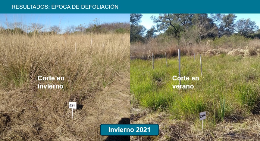 Se caracterizó la dinámica del crecimiento de las matas y la intermata luego de una defoliación intensa en los momentos de pico de floración y letargo, donde se demostró que las defoliaciones produjeron un aumento en la productividad primaria neta aérea de la intermata, pero que fueron perjudiciales cuando se realizaban en invierno.
