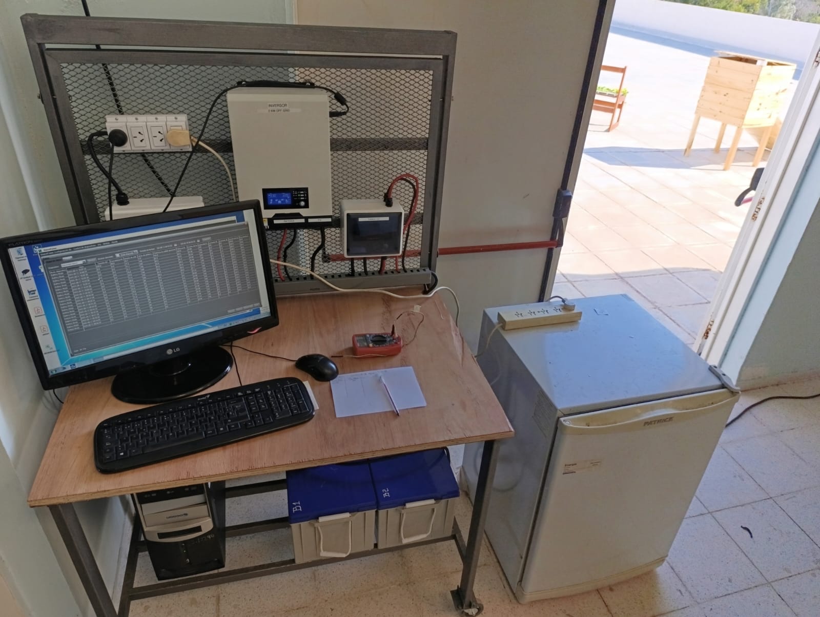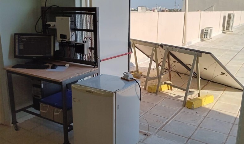 El banco experimental de sistema fotovoltaico se encuentra monitoreado en tiempo real, con una heladera y una computadora conectadas como cargas representativas.