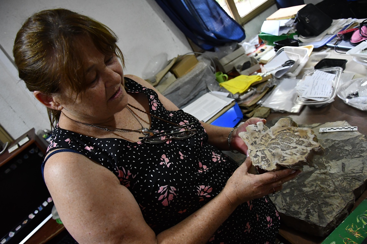 Recordó que, en la década de los 90’, el equipo de investigación integrado por el Dr. Rafael Herbst, las Dras. Alicia Lutz y Silvia Gnaedinger del CECOAL, conjuntamente con el Dr. Alejandro Troncoso de Chile, hicieron numerosos viajes de campaña de prospección y colección paleontológica a Chile, colectando gran cantidad de material fosilífero, principalmente impresiones de hojas, siendo parte de esa colección donada a la Colección.