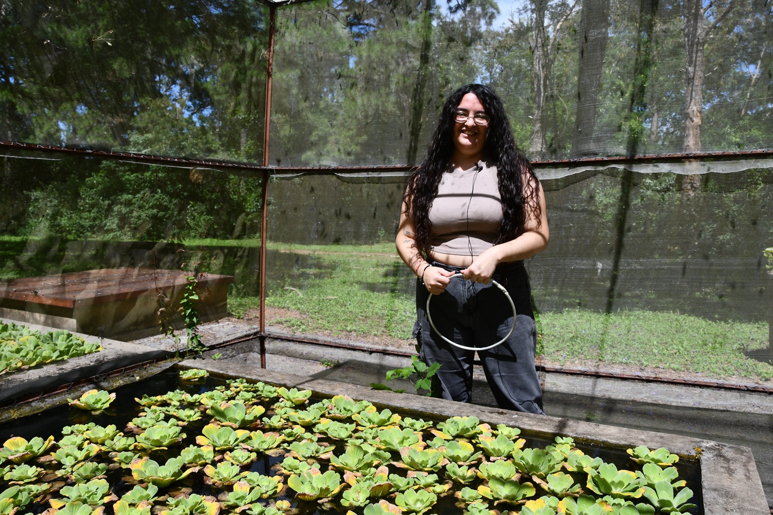 Por su parte, Anabella Cortez, de 4° Año de la Licenciatura en Ciencias Biológicas, explicó que su actividad se enfoca principalmente en el gorgojo N. affinis, desde su obtención en la planta, la separación e identificación de estos insectos, la contabilización de ejemplares, la búsqueda y erradicación de otros depredadores en la muestra, hasta la liberación del gorgojo en las plantas en los piletones experimentales.