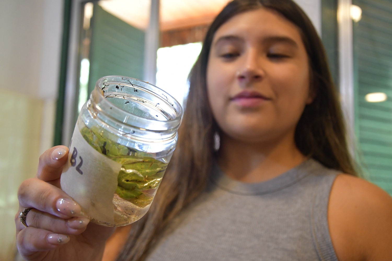 En ese sentido, la Lic. Bertucci señaló que están sumamente conformes con la tarea del equipo de jóvenes estudiantes, quienes, con asesoramiento permanente, están realizando un aporte significativo en el avance de la cría masiva, participando en las distintas labores necesarias, como manejo de las plantas en piletones experimentales, obtención, identificación y separación de ejemplares de insectos, así como el monitoreo de la población para garantizar que se estén alimentando y reproduciendo.