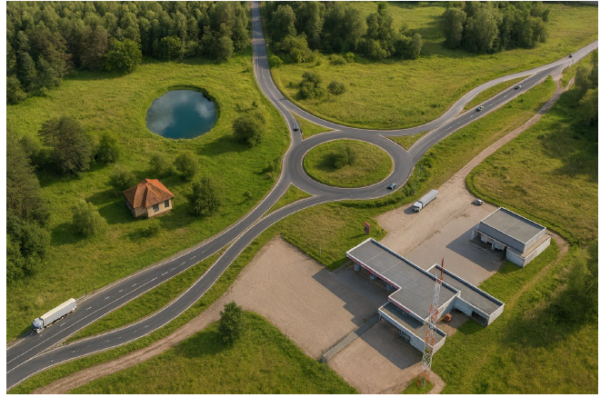 Recomiendan estudiar con mayor detalle la posibilidad de habilitar una cuarta entrada a la rotonda que funcione como acceso y egreso para la estación de servicio ubicada junto a la intersección. En esta instancia, esa alternativa fue descartada por la complejidad de las maniobras de giro para camiones de gran porte. La opción de desplazar la rotonda para mejorar esa conexión también fue analizada y descartada, porque implicaría la expropiación de terrenos privados.