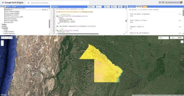 Herramientas de Trabajo. El proyecto tomó como punto de partida imágenes del satélite Landsat para construir registros del Chaco en dos momentos: 1990 y 2020. A partir de esas imágenes —procesadas en Google Earth Engine, una plataforma que permite analizar datos satelitales desde cualquier computadora conectada a internet— se clasificó qué hay en cada punto del mapa.