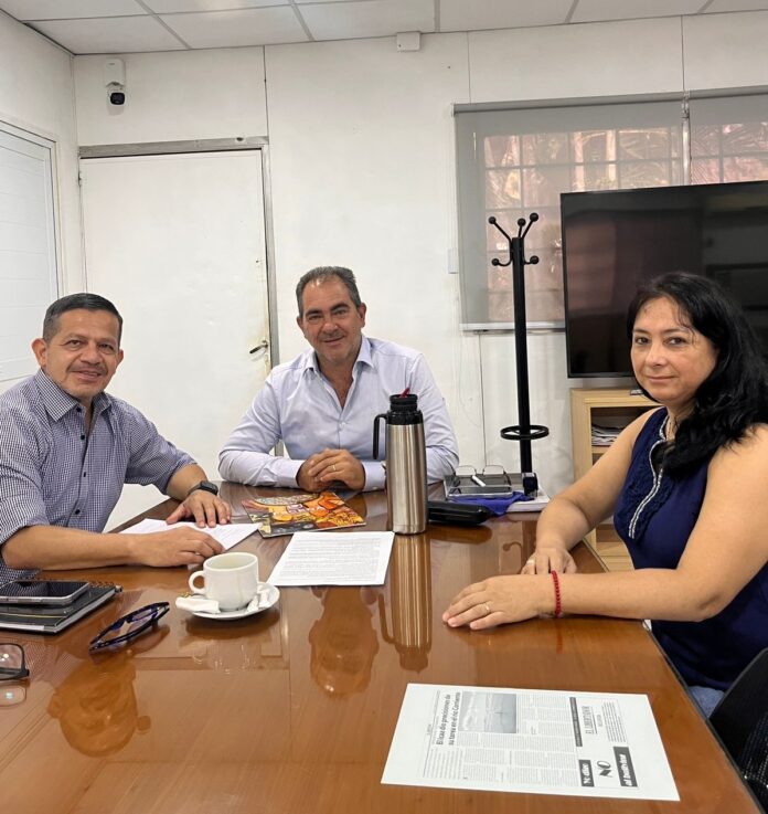 Representando a FaCENA, visitó la sede del ICAA el especialista Juan Daniel Ruiz Diaz, Secretario de Extensión Universitaria y director del Laboratorio de Química Ambiental donde fue recibido por el interventor del organismo provincial, ingeniero agrónomo Sebastián Perborell, Administrador del Instituto Correntino del Agua y el Ambiente, acompañado de la bioquímica Ana Meza, coordinadora de la Gerencia de Gestión Ambiental.