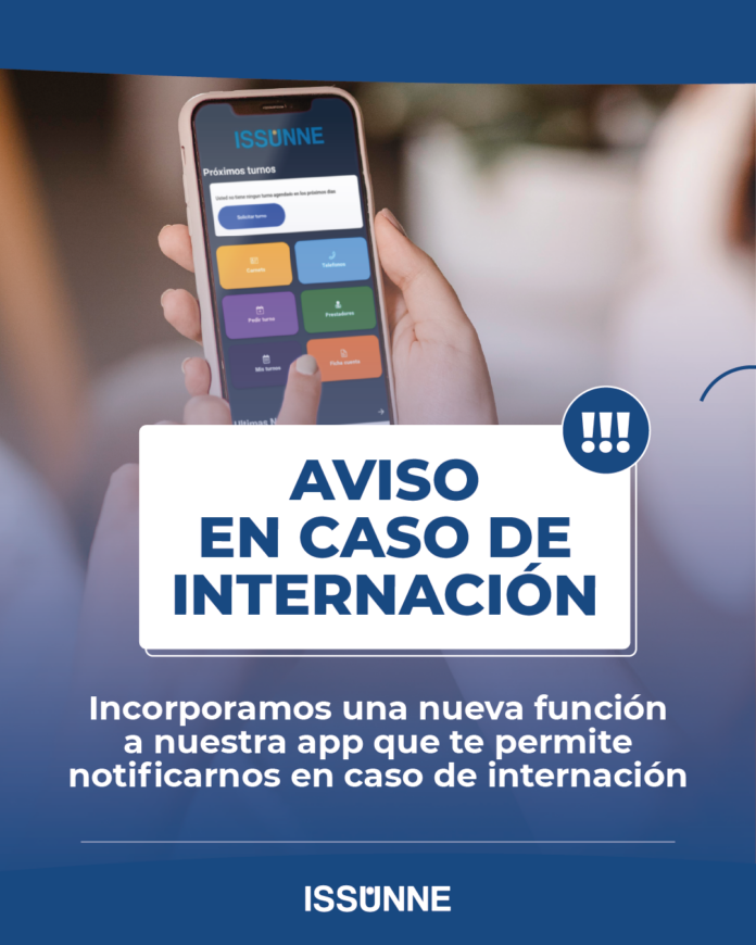 La aplicación del Instituto de Servicios Sociales de la UNNE incorporó una nueva función Para notificar internaciones y permitir que la persona afiliada pueda coordinar con la clínica o sanatorio la cobertura correspondiente.