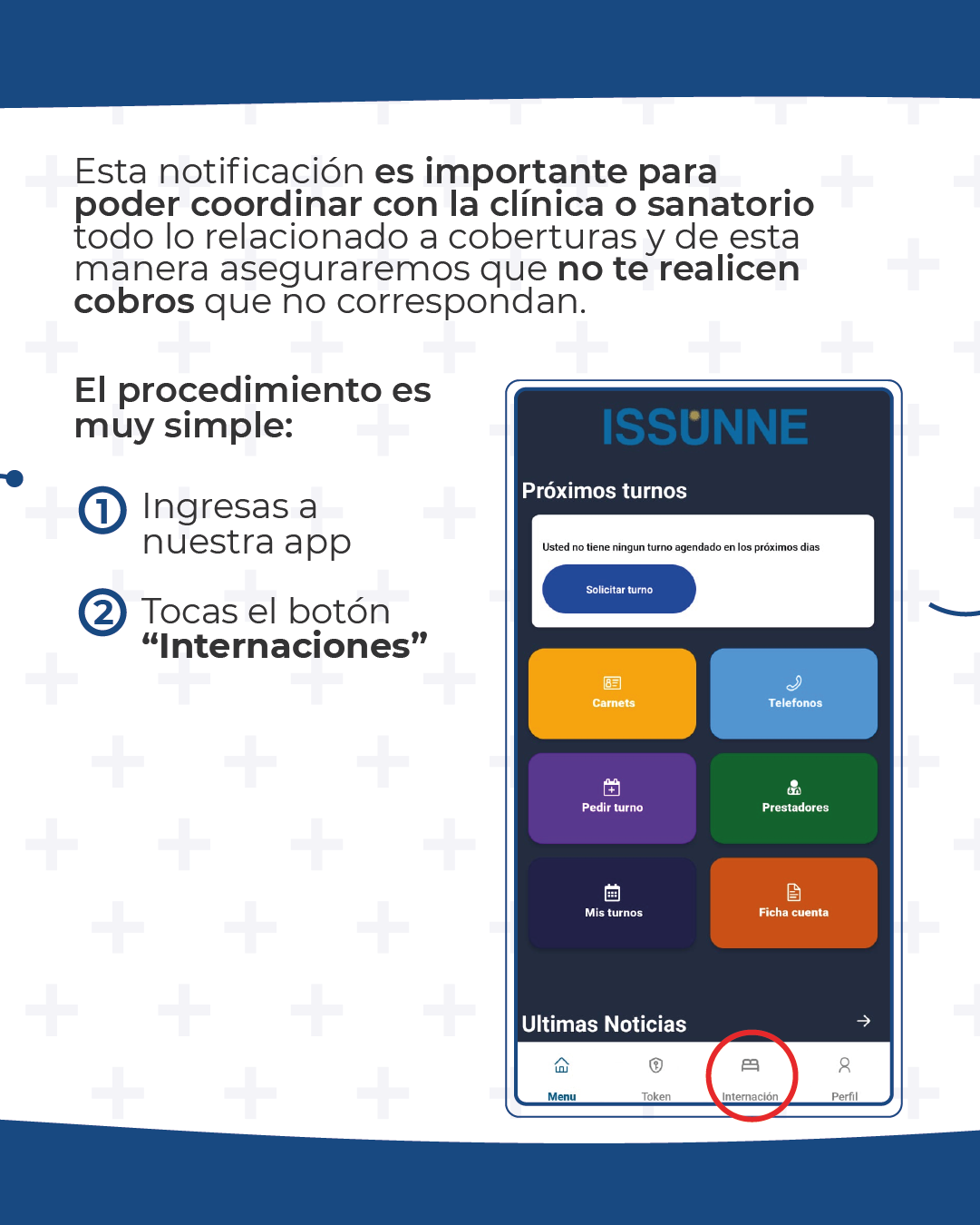 Este aviso es fundamental para que el equipo de ISSUNNE pueda coordinar con la clínica o sanatorio todos los aspectos relacionados a la cobertura, evitando inconvenientes o cobros que no correspondan durante la atención médica.
