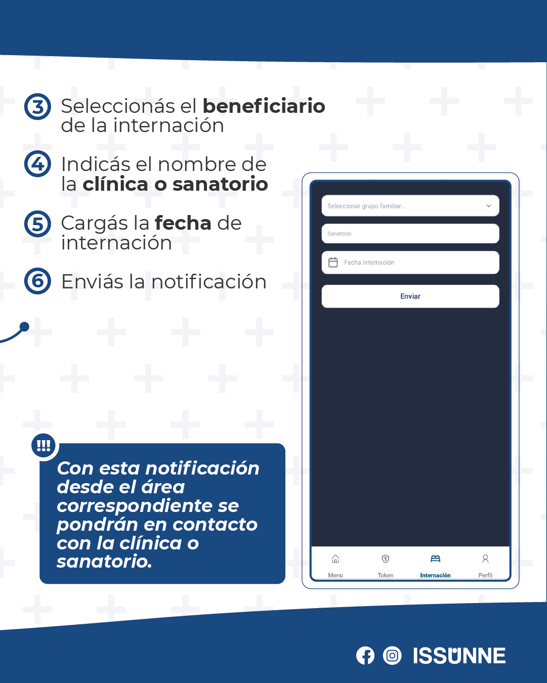 Una vez enviada la información, el área correspondiente de ISSUNNE se pondrá en contacto con la institución de salud para coordinar la cobertura de la internación.