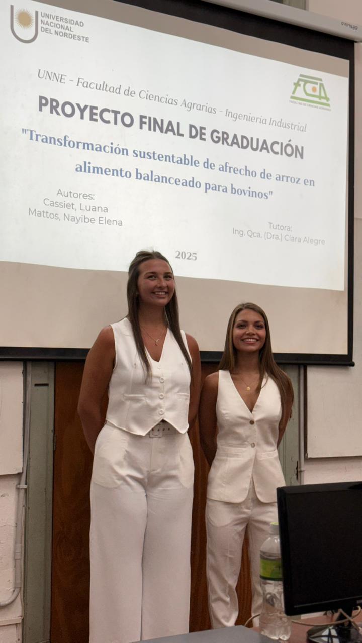 Tras un largo proceso de trabajo, finalmente presentaron el anteproyecto «Transformación sustentable del afrecho de arroz en la producción de alimento balanceado para bovinos», con el que se recibieron de ingenieras industriales.