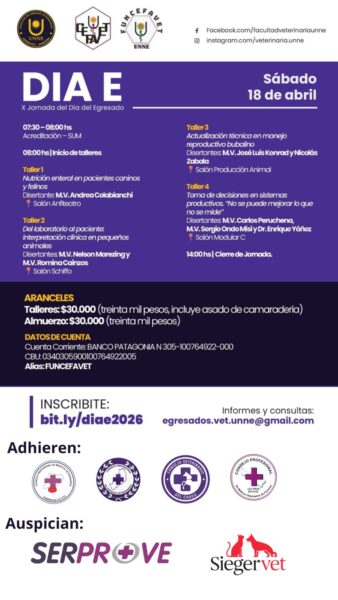 Mas información se puede solicitar al correo electrónico egresados.vet.unne@gmail.com