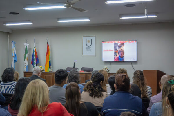 Durante el acto se proyectó un video institucional y se compartieron salutaciones de graduados que actualmente se desempeñan en el exterior: la Prof. Analía Leite, desde la Universidad de Málaga; Juan Carlos Lagarde, desde México; y el Dr. Oscar Luis Pyszizek, desde Bogotá, Colombia, quienes destacaron la formación recibida y su proyección internacional.