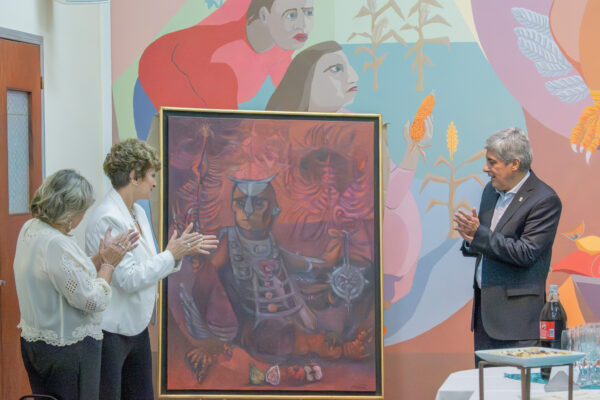 Posteriormente, en el marco de un brindis realizado en el Salón del Consejo Directivo, se llevó a cabo el descubrimiento de un cuadro pintado y donado a la institución por el artista Rodolfo Schenone, incorporando una nueva pieza al patrimonio cultural de la Facultad.