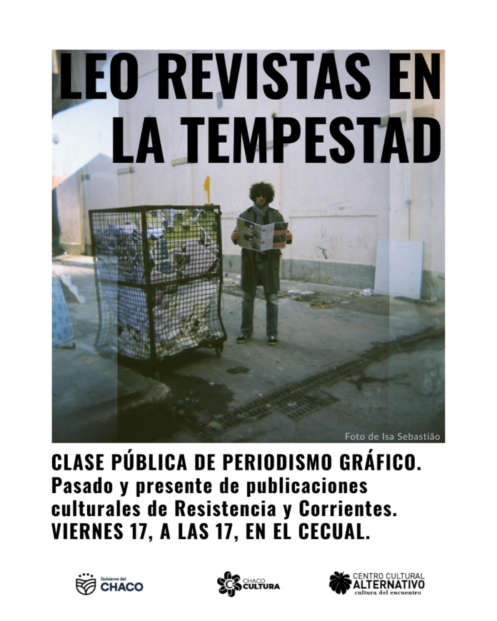 El Centro Cultural Alternativo (Cecual) dependiente del Instituto de Cultura del Chaco junto a docentes de la carrera de Comunicación Social de la Facultad de Humanidades de la Universidad Nacional del Nordeste, invitan a participar de la charla “Leo revistas en la tempestad”, este viernes 17, a las 17 horas en Santa María de Oro 471- Resistencia, Chaco.