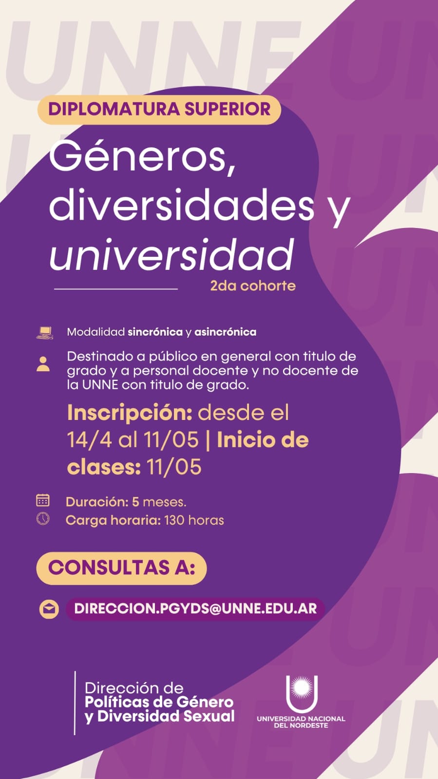 Los cupos son limitados. Podés realizar tu preinscripción en el siguiente enlace 🔗 https://forms.gle/ySxjnpSjnDwPEQpRA o realizar consultas en direccion.pgyds@unne.edu.ar