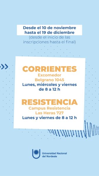• En Corrientes, la Posta de Vacunación funcionará los días lunes, miércoles y viernes de 8 a 12 horas, en el Excomedor Universitario, ubicado en Belgrano 1045, desde el próximo 10 de noviembre hasta el 19 de diciembre próximo.